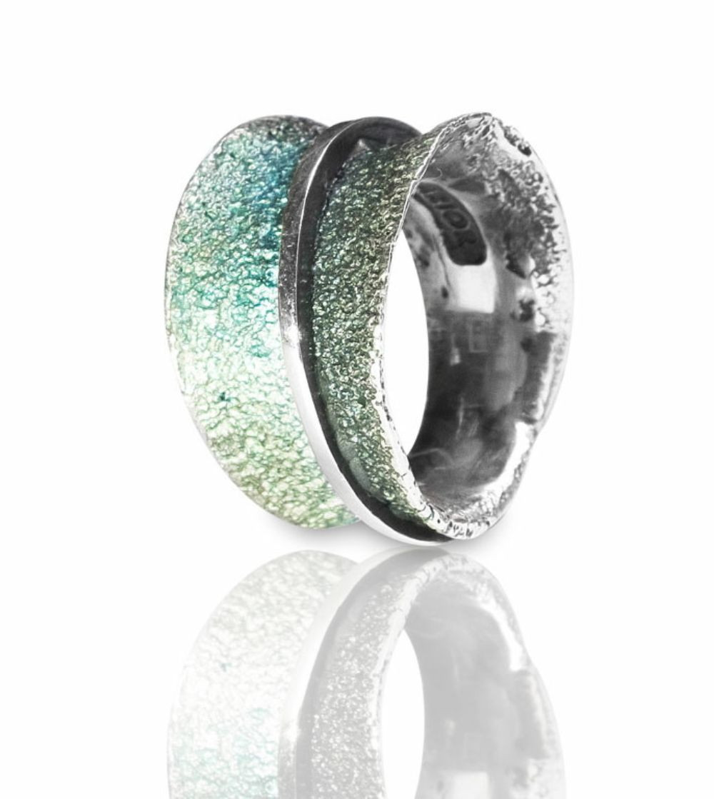 Sortija plata ancha dos capas colección Osha en esmalte al ácido en color azul eléctrico.
